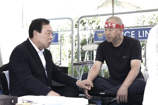 최민호 세종시장이 12일 국회의사당 정문에서 단식 농성 중인 해양수산부 노동조합 천막을 찾아 국민이 목숨을 걸고 호소하게 된 점에 안타까움을 표하고 정부가 이제라도 대화에 나서줄 것을 촉구했다.