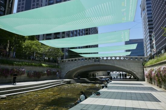 그룹 CI(기업이미지) 색상인 시원한 청록색 컬러로 제작된 대형 그늘막은 청계천 시점부인 모전교부터 광통교까지 약 50m 구간에 설치됐다. 그늘막은 9월까지 운영되며, 사용된 원단은 가방이나 파우치 등 업사이클링 제품으로 활용될 계획이다.