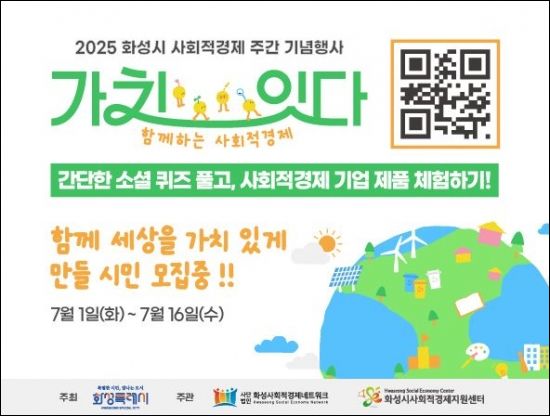 경기도 화성시는 사회적경제에 대한 인식 확산을 위한 시민 체험 프로그램 '가치,잇다: 함께하는 사회적경제' 참가자를 16일까지 모집한다.