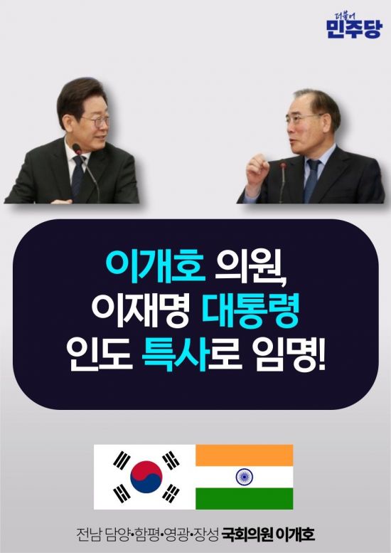 더불어민주당 이개호 의원(전남 담양·함평·영광·장성)이 오는 16~19일 3박4일 일정으로 이재명 대통령 특사로 인도를 방문한다고 14일 밝혔다.