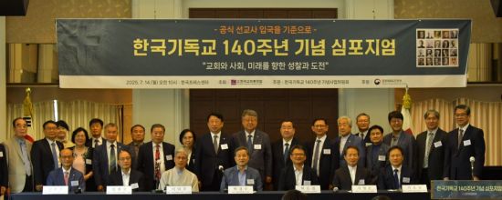 이어 진행한 심포지엄은 장로회신학대학교 박경수 교수가 좌장을 맡아 진행했다. 첫 번째 발제에서 감리교신학대학교 이덕주 명예교수는 한국기독교 140주년의 신학·역사적 근거에 대해 "1884년 7월2일 고종이 의료와 교육사업을 위해 선교를 윤허한 후 1995년 4월5일 부활절에 내한한 미감리회 선교사 아펜젤러와 미국 북장로회 선교사 언더우드로 인해 한국기독교 선교가 시작됐다"고 설명했다.