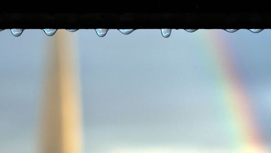 15일 오후 서울 지역에 세찬 소나기가 지나고 난 후 잠실 서울스카이 옆으로 이쁜 무지개가 걸렸다.
