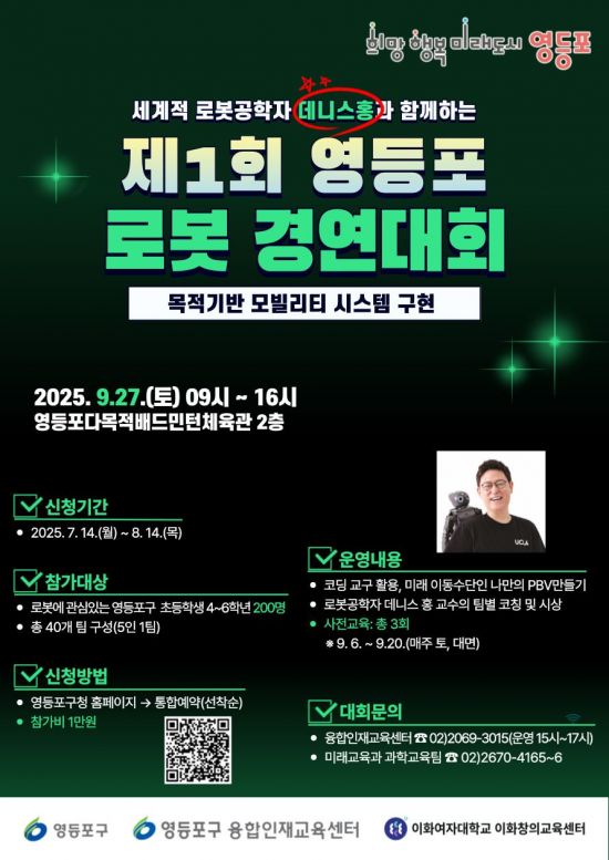 서울 영등포구가 '제1회 영등포 로봇 경연대회'를 개최하고, 참가자 200명을 모집한다.