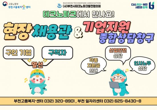 경기 부천시는 16일 오후 2시 부천테크노파크 2단지 근로자쉼터 및 일드림센터에서 '찾아가는 현장채용관'을 운영한다.