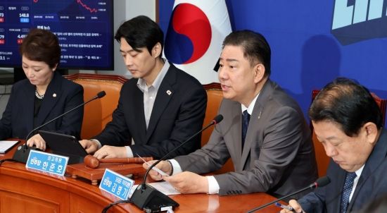 김병기 더불어민주당 당대표 직무대행 겸 원내대표가 16일 국회에서 열린 최고위원회의에서 발언하고 있다.