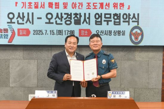 경기도 오산시는 15일 시청 상황실에서 오산경찰서와 '야간 조도 개선 업무협약'을 체결했다고 16일 밝혔다.