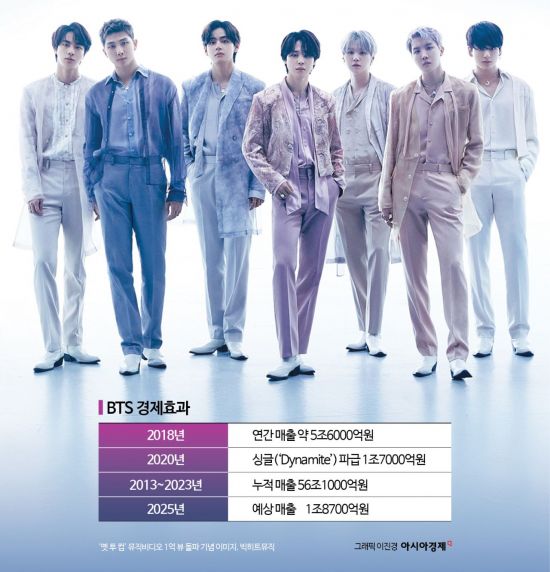 2020년 9월1일 그룹 방탄소년단(BTS)의 '다이너마이트'가 K팝 역사상 처음으로 미국 빌보드 '핫 100' 차트 1위에 올랐다. 문화체육관광부는 불과 일주일 뒤인 9월7일 이 곡의 경제적 파급 효과가 약 1조7000억원에 달할 것이라는 분석 결과를 발표했다. 세부적으로 생산 유발 효과가 1조2324억원, 부가가치 유발 효과는 4801억원으로 추산했다. 고용 유발 효과도 7928명에 이를 것으로 분석했다.