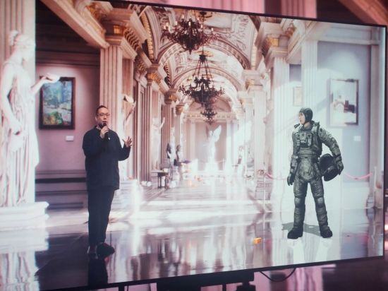 16일 네이버(NAVER) 사옥 내부 '비전스테이지'에서 만난 이 장면은 실제였다. 르네상스풍 박물관 홀을 배경으로 김성호 이머시브 미디어 플랫폼 리더와 우주복을 입은 인물이 나란히 서서 인사를 나눴다. 무대에는 김 리더 하나뿐이었지만, 스크린 속에는 진짜처럼 움직이는 우주인 캐릭터가 함께 있었다.