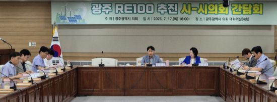 광주시의회 박필순 산업건설위원장은 17일 시의회 대회의실에서 광주시 관계 부서 및 유관기관과 함께 '광주 RE100 추진 간담회'를 열고, 지역 차원의 대응 방안을 논의했다.