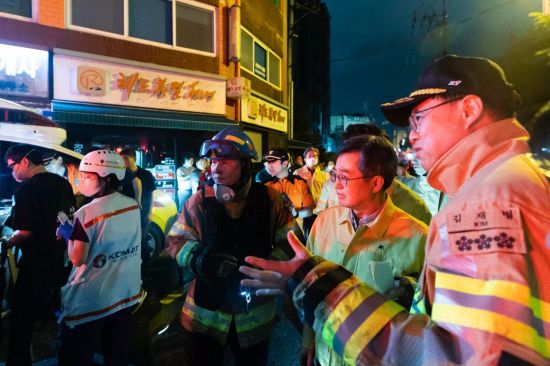 김동연 지사는 이날 밤 11시40분께 사고 현장을 찾아 김재병 경기도소방재난본부장으로부터 상황을 보고 받은 뒤 박명원 광명시장 등과 함께 피해 주민의 건강 상태 등을 점검했다. 또 피해 주민의 임시 거주 시설에 대한 적극적인 지원도 약속했다.