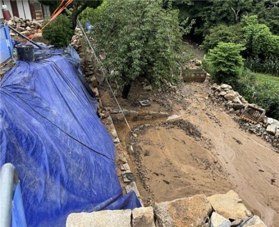 많게는 400㎜ 넘는 호우가 쏟아진 충남 서산 일대에선 보물 '서산 개심사 대웅전' 경내의 토사가 흘러내렸다. 추가 피해를 막기 위해 장막을 임시로 설치한 국가유산청과 서산시는 향후 복원 계획을 수립할 예정이다.