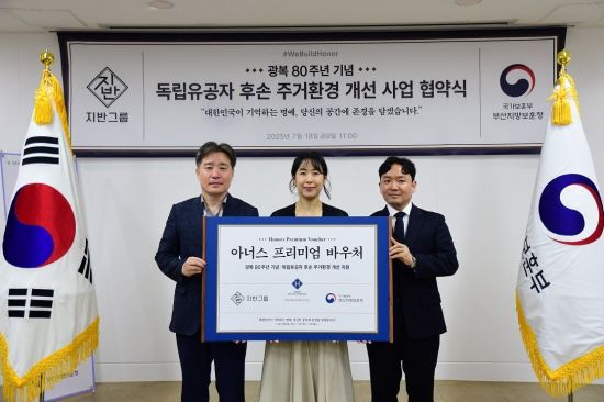 부산지방보훈청(청장 이남일)은 지난 18일 청사 내 3층 백재덕실에서 공간디자인 전문기업 지반그룹(대표이사 김문건)과 광복 80주년을 기념해 독립유공자 후손의 주거복지 향상을 위한 업무협약을 체결했다.