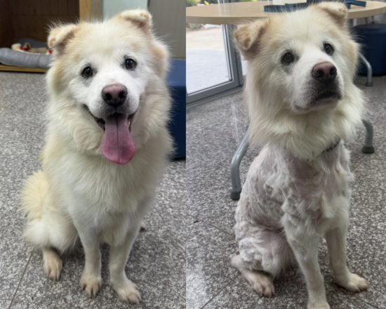다시 보호소에 돌아온 쿠노는 풍성했던 털이 엉망으로 이발된 모습이었다. 센터는 "자가 미용으로 엉망이 된 털만 남았다"며 "솔직히 말하자면 파양으로 돌아온 것만으로도 힘이 빠지는데 이 친구의 매력을 어떻게 다시 보여줄 수 있을지 막막하다"고 토로했다.
