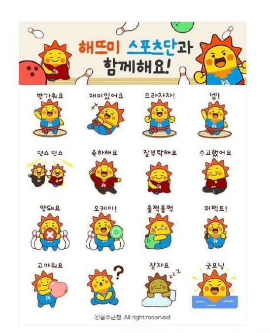 울산 울주군이 공식 캐릭터 '해뜨미'를 활용해 제작한 '해뜨미 스포츠단' 모바일 이모티콘이 폭발적인 인기를 끌고 있다.
