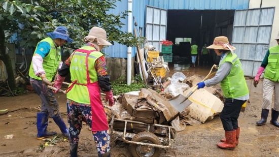 또한 봉사자들은 피해 현장의 상황을 고려하여 복구 작업에 필요한 개인 장화, 장갑 등 활동 물품을 직접 마련해 현장에 도착해 토사 제거, 침수 쓰레기 처리, 침수 잔재물 정비 등의 작업을 신속하게 진행했다.