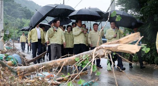 한편 강 대변인은 "이 대통령은 윤호중 행정안전부 장관에게 예산 지원 등 자원과 행정력을 총동원해 피해 주민들을 신속 지원하라고 지시했고, 특별재난지역 선포 준비 상황을 점검하면서 재난안전관리 특별교부세 지원을 언급했다"고 말했다. 이에 이날 피해지역 점검에 동행한 윤 장관은 특별재난지역 선포와 관련해 "오늘 저녁까지 전부 조사를 마치고 내일이면 특별재난지역으로 선포할 수 있도록 준비를 하겠다"고 말했다.