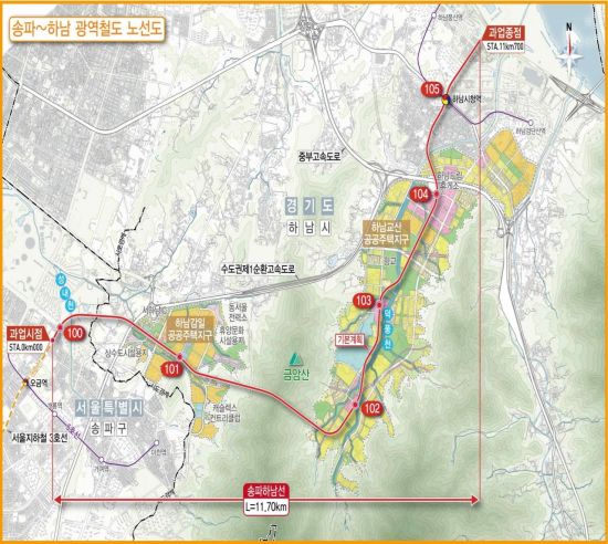 송파하남선은 서울 송파구 오금역에서 하남시청역까지 총연장 11.7㎞, 정거장 6개소로 계획됐다. 총사업비는 1조8356억원이며, 2032년 개통을 목표로 추진된다.