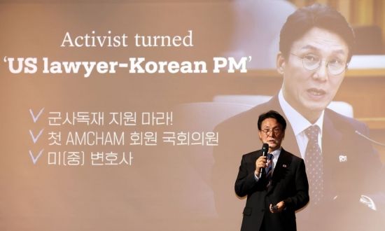 김민석 국무총리가 22일 서울 여의도 콘래드서울 호텔에서 열린 주한미국상공회의소(AMCHAM KOREA) 세미나에서 기조연설을 하고 있다. 청사사진기자단