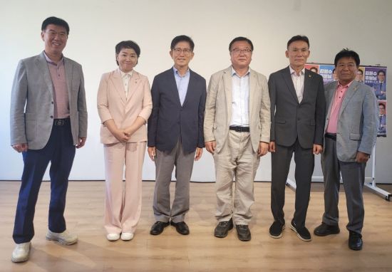24일 세종시 조치원읍을 방문한 김문수 국민의힘 당대표 후보가 자당 세종시의원들과 기념 촬영을 하고 있다.