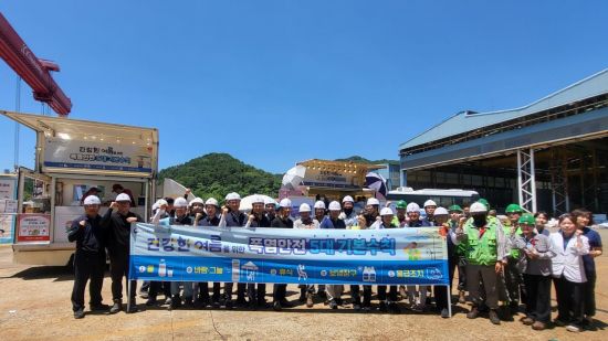 경남동부 안전보건실무단(단장 권구형, 고용노동부 양산지청장)이 24일 창원특례시 진해구 '케이조선' 사업장을 찾아 '폭염안전 쿨데이' 온열질환 예방 캠페인을 펼쳤다.