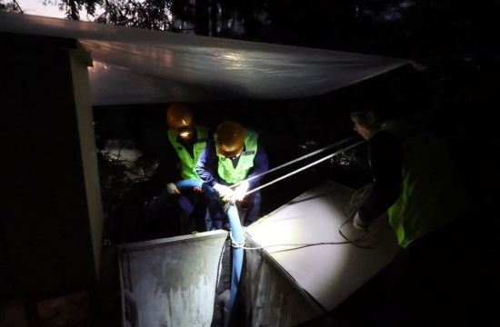 연일 체감온도가 35도 이상을 기록하고 있는 25일 이른 새벽에 서울 중구의 한 아파트에서 분뇨수거업체 작업자들이 무더위를 피해 이른 새벽에 작업을 하고 있다.