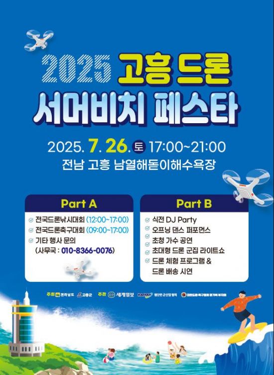 전남 고흥군(군수 공영민)은 미래 먹거리인 드론산업 대중화와 관광 활성화를 위해 오는 26~27일 남열해돋이해수욕장 일원에서 '2025 고흥 드론 서머비치 페스타'를 개최한다고 25일 밝혔다.