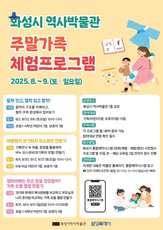 경기도 화성시는 8~9월 두 달간 화성시역사박물관에서 '주말 가족체험 프로그램'을 운영한다.