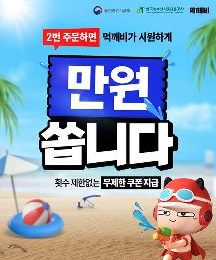 2025년 7월 25일부터 공공배달앱 먹깨비가 주문 2회시마다 1만원 할인 쿠폰을 무제한 제공하는 여름맞이 무한 쿠폰 이벤트를 본격 시작한다.