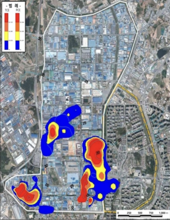 광산구는 최근 하남산단과 주변 도심권에 설치된 지하수 관정 245곳에 대한 전수조사에 나섰다. 이는 하남산단 지하수에서 TCE(트라이클로로에틸렌), PCE(테트라클로로에틸렌)가 기준치를 초과해 검출됐다는 사실이 확인된 뒤 내놓은 수습책이다. 현재까지 검사 결과가 나온 136곳 가운데 공업용 관정 2곳에서 기준치를 넘는 TCE와 PCE가 검출됐다.