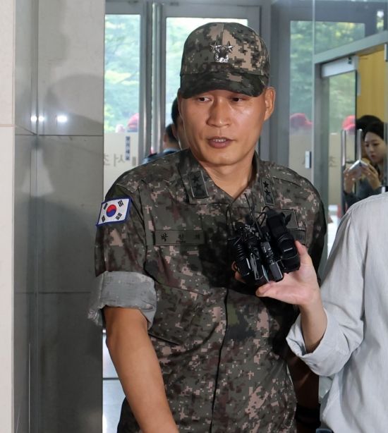 박진희 전 군사보좌관이 28일 서울 서초구 순직해병특검 사무실에 출석하고 있다. 박 전 보좌관은 이종섭 전 국방장관의 최측근으로 지난 2023년 7월, 김계환 전 해병대사령관과 박정훈 해병대수사단장이 채 상병 사건 초동조사 결과를 이 전 장관에게 보고했던 현장에 함께 있던 인물이다.