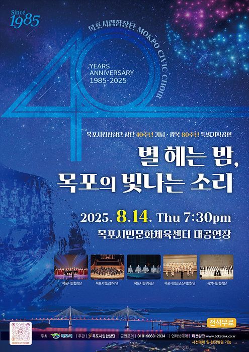 특히 '테 데움' 무대는 목포시립합창단 수석단원인 이윤희(소프라노), 김관식(테너), 황난경(알토), 김지영(베이스)이 솔리스트로 참여해 40주년의 상징성을 더한다.