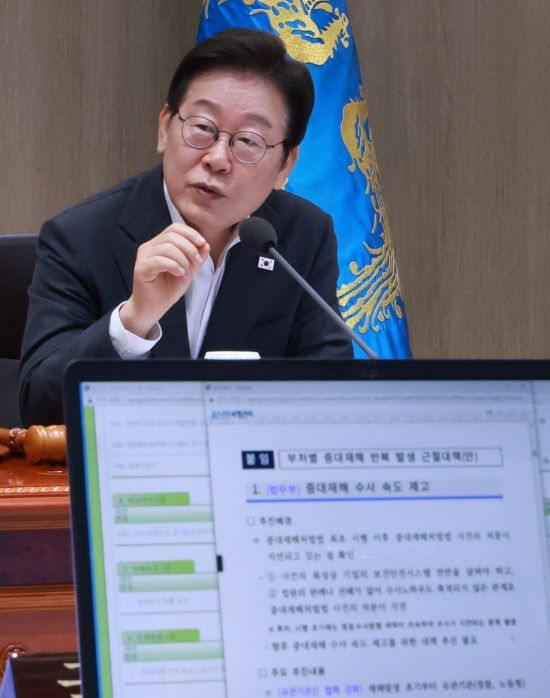 이재명 대통령이 29일 국무회의에서 잦은 산재 사망사고를 언급하며 "아주 심하게 얘기하면 법률적 용어로 미필적 고의에 의한 살인 아니냐"라고 강하게 질타했다. 반복적이고 상습적인 산재 사망사고에는 고액의 징벌적 배상 제도를 도입하라고 지시했다. 특히 국무위원을 향해 "산재 사망사고에 직을 걸라"라며 직접 불시 점검에 나서겠다고 밝혔다.