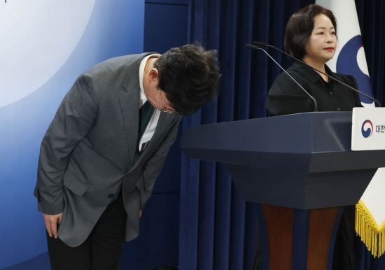 김영훈 고용노동부 장관이 29일 서울 종로구 정부서울청사에서 노동조합 및 노동관계조정법 개정안(노란봉투법) 관련 브리핑에서 인사하고 있다.