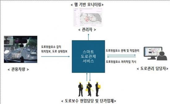 이 시스템에서는 공용차량에 사물 인식 카메라를 탑재해 도로 주행 중 도로 파임(포트홀) 등 위험 요인을 실시간으로 감지하고, 이를 담당자에게 자동 전송한다. 이후 담당자는 관내 도로유지관리 업체에 통보해 24시간 이내에 현장에 출동해 보수하는 구조로 운영된다.