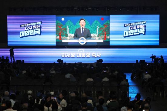 이 대통령은 "1년 전 저 역시 동지 여러분과 함께 이 자리에 함께 있었다"면서 "국민과 당원의 힘을 모아 성장을 회복하고 희망의 나라, 다시 뛰는 대한민국을 만들겠다고 약속드렸다"고 말했다. 그러면서 이 대통령은 "우리는 모두 같은 뜻을 품고 같은 곳을 향해가는 동지들"이라며 "한동안은 치열하게 경쟁했더라도 지금 이 순간부터는 새로운 지도부를 중심으로 일치단결해 국민이 주인인 나라, 국민이 행복한 대한민국으로 거침없이 나아가자"고 강조했다.