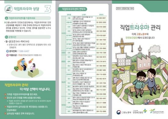 직업트라우마센터는 중대 산업사고, 동료의 자살, 직장 내 괴롭힘, 직장 내 성희롱·성폭력 등 사건·사고를 직간접적으로 경험한 근로자가 트라우마 증상을 극복해 정상적인 일상생활을 할 수 있도록 무료로 지원하는 센터다. 2018년 대구에 처음 설치됐고, 현재 전국에 23곳이 운영되고 있다.