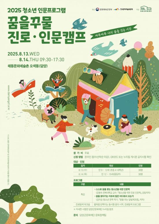 (재)담양군문화재단(이사장 정철원, 이하 재단)은 내달 13~14일 이틀간 관내 청소년을 대상으로 진로인문캠프를 진행한다고 4일 밝혔다.