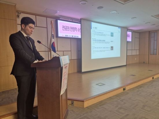김은식 대한전공의협의회 비상대책위원이 4일 서울 영등포구 국회의원회관에서 개최된 '전공의 안정적 수련 재개를 위한 수련환경 개선·수련 연속성 확보 방안 모색 정책 세미나'에서 발제를 하고 있다. 최태원 기자