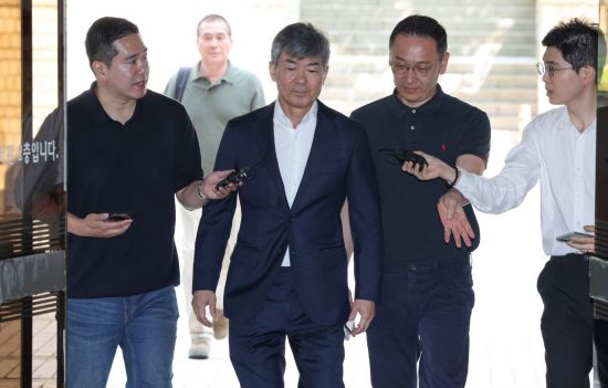이날 오전 10시5분께 법원에 도착한 이 전 대표는 '혐의를 인정하는지', '이정필씨에게 윤석열 전 대통령 부부와의 친분을 언급하신 게 맞는지', '김건희 여사에게 이정필 형량 청탁한 사실이 있는지' 등 취재진 질문에 답하지 않고 곧장 법정으로 향했다.