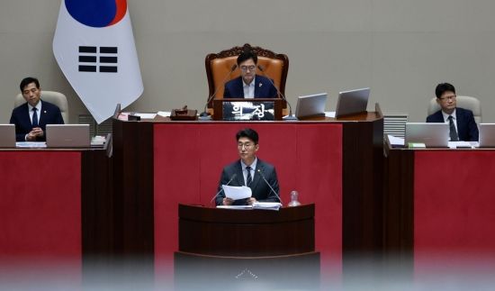 노종면 더불어민주당 의원이 5일 국회 본회의에서 '방송3법(방송법·방송문화진흥회법·한국교육방송공사법 개정안)' 상정과 관련한 무제한토론(필리버스터)을 하고 있다.