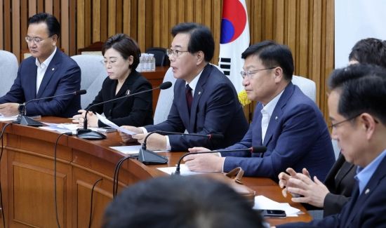 송언석 국민의힘 비상대책위원장 겸 원내대표가 5일 국회에서 열린 원내대책회의에서 발언하고 있다.
