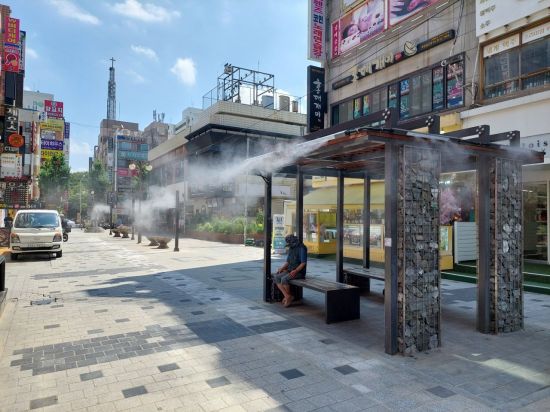 시는 경기도의 폭염 저감시설 설치사업을 통해 확보한 재난관리기금을 활용해 쿨링포그를 설치했다고 설명했다.