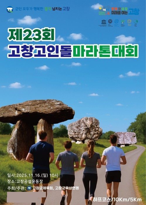 전북 고창군은 오는 11월 16일 고창공설운동장에서 '제23회 고창고인돌 마라톤대회'가 열린다고 6일 밝혔다.