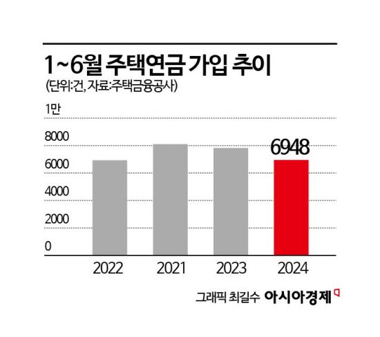 5~6월 연속 주택연금 신규 가입이 줄면서 올해 상반기 가입 건수는 6948건으로 집계됐다. 지난해 7827건보다 11%가량 줄었다. 상반기 기준으로는 2023년(8109건) 고점을 찍은 이후 2년 연속 가입자 수가 줄고 있다.