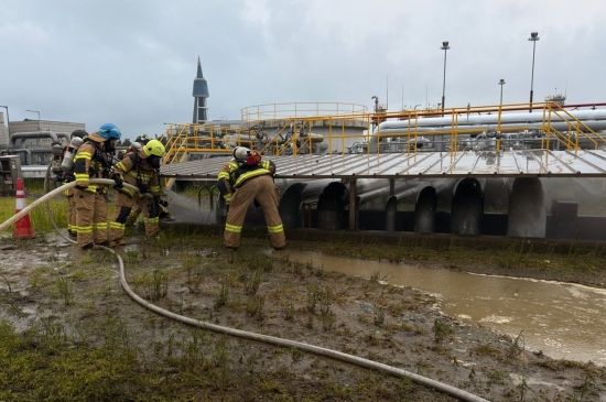 소방 당국은 소방관·경찰관 88명과 장비 27대를 현장에 투입해 누출 현장에 물을 집중적으로 뿌리는 등 안전 조치를 했다. 경찰과 소방 당국은 인근 부두에 접안한 선박에서 기지로 가스를 옮기던 중 배관에서 누출 사고가 일어난 것으로 보고 구체적인 경위를 조사하고 있다.