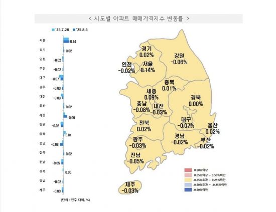 8월 첫째주 광주 -0.03%, 전남 -0.05%