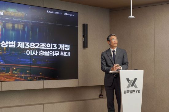 지난 11일 서울 강남구 역삼동 YK 주사무소에서 한국사내변호사회(회장 이재환)와 법무법인 YK(대표변호사 강경훈) 공동으로 개최한 상법개정세미나에서 강진구 YK 변호사(사진)는 제3자 배정 유상증자와 지배주주 주식 매각에서 관련 이슈가 발생할 것이라며 "인수합병(M&A)이 어려워질 수 있다"고 밝혔다.