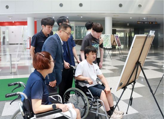 총 28점의 작품은 글로벌R&D센터 1층 로비 공간에 배치됐다. 관람객은 전시를 통해 장애인의 삶과 꿈, 그리고 기술을 통한 표현의 가능성을 엿볼 수 있다.
