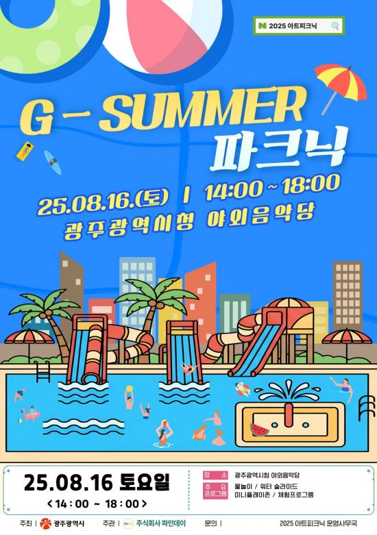 시가 연중 12차례 운영하는 아트피크닉 중 여름 행사인 '지-서머 피크닉'은 공연(솜사탕쇼·기구거품쇼), 오락, 물놀이(물 미끄럼틀·대형 풀장·그늘막 수영장), 체험프로그램(여름 볕가림모자 꾸미기·대나무 물총 꾸미기·비치볼 꾸미기 등 10종) 등 다채로운 프로그램으로 구성됐다. 모든 프로그램은 무료이며, 행사는 오후 2~6시 진행된다.