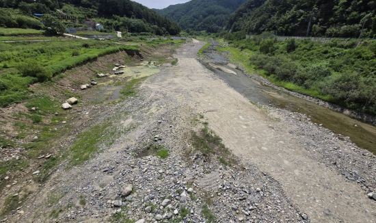 12일 강원 강릉시 주 상수원인 오봉저수지 저수율이 역대 최저치인 25.4%까지 낮아진 가운데 저수지 중·상류 지역이 잡초가 무성하거나 맨바닥을 드러내고 있다. 15일 현재 저수율은 24.2%까지 낮아져 제한급수를 시행하기로 했다. 연합뉴스
